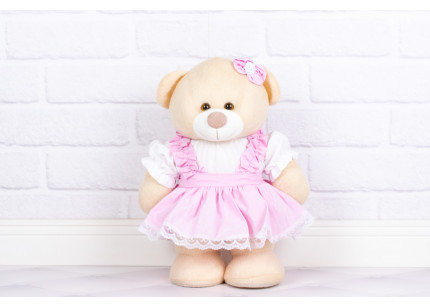 Ursos Amore Camponesa rosa liso - Pelúcia Doce de Leite