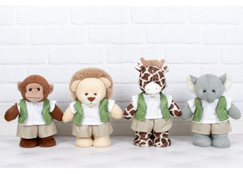 Safári Amore Leão, Elefante, Macaco e Girafa Colete verde liso com caqui