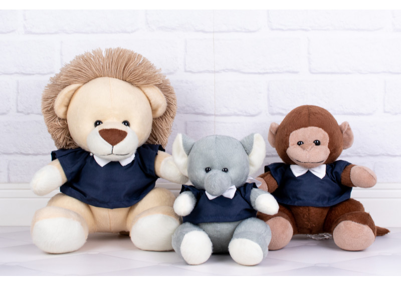 Trio Safari Provence Misto Leão 22 cm, Macaco 18 cm e Elefante 15 cm - Camiseta e gravata marinho liso