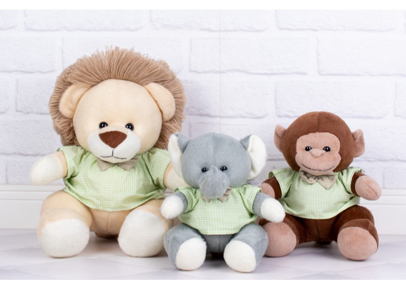 Trio Safari Provence Misto Leão 22 cm, Macaco 18 cm e Elefante 15 cm - Camiseta e gravata xadrez de verde