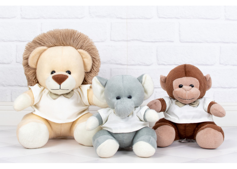 Trio Safari Provence Misto Leão 22 cm, Macaco 18 cm e Elefante 15 cm - Camiseta e gravata palha liso