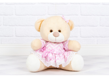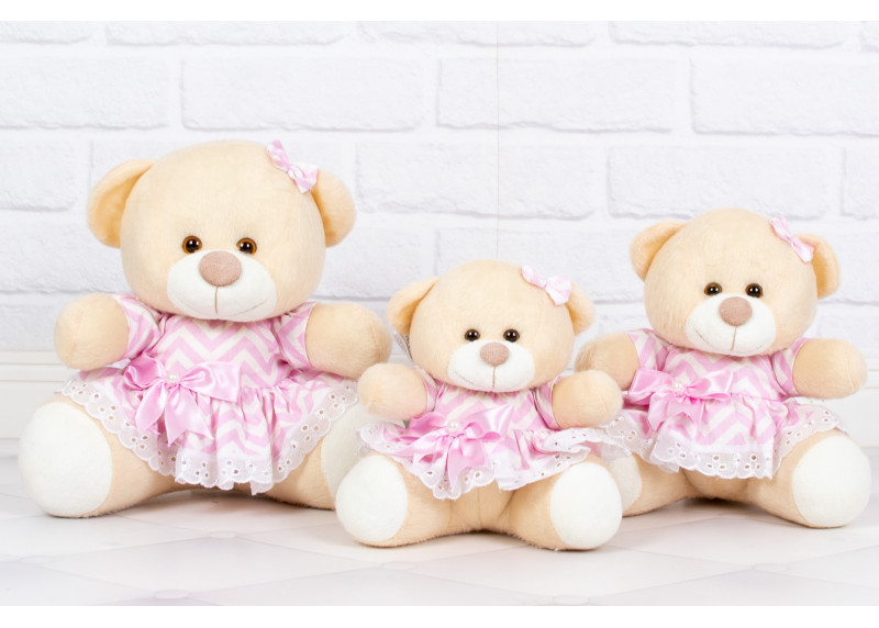 Ursos Tedde Vestido com Lese chevron rosa - Pelúcia Doce de Leite